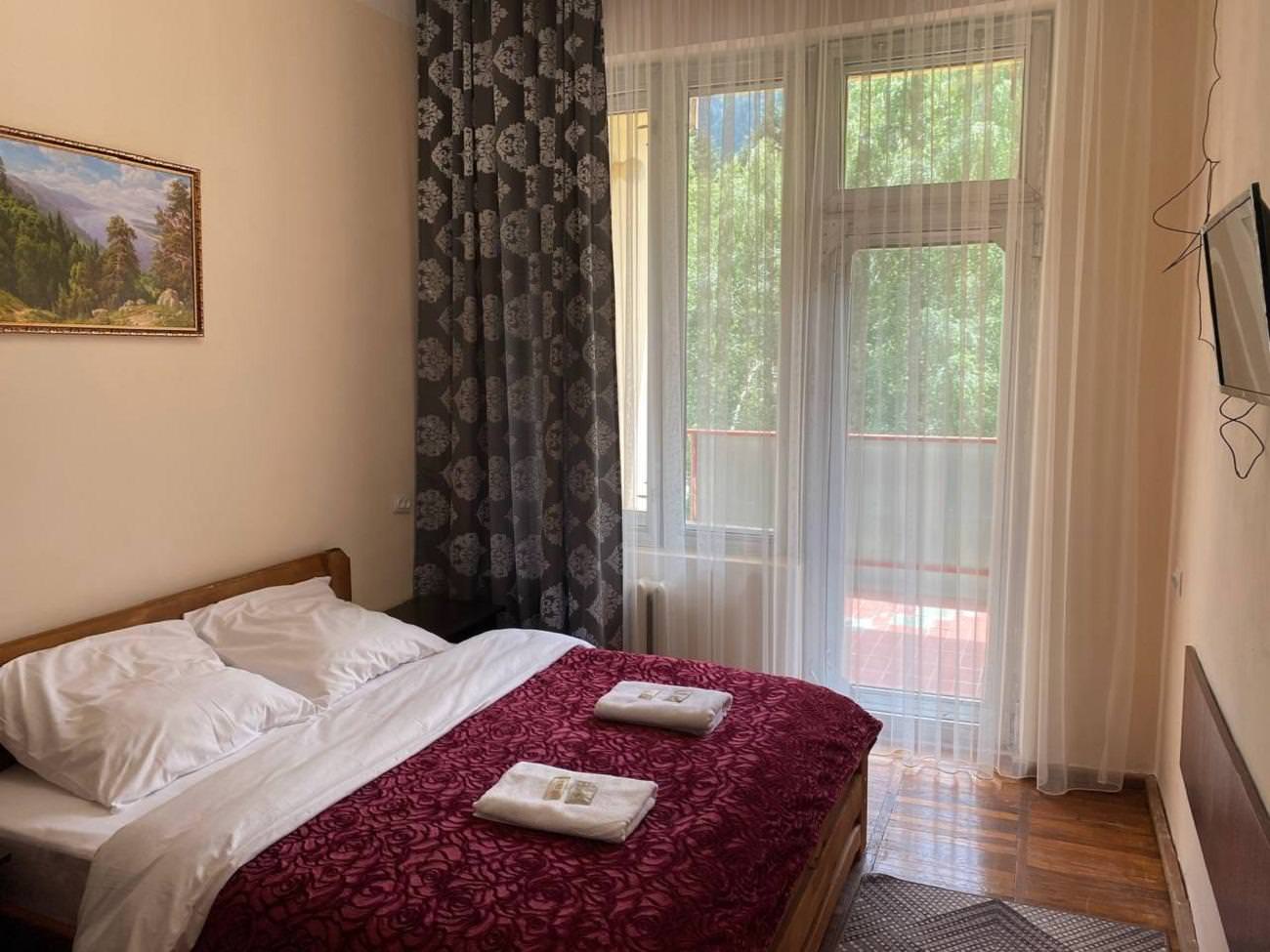 Бюджетный 2-местный номер с прекрасным видом на горы. Номера расположены на 2 и 3 этажах. Типы номеров - блочные. В номере: балкон, шкаф, кровать, прикроватные тумбочки, комод, зеркало, тв плазменный, общий сан узел, шампунь, мыло.